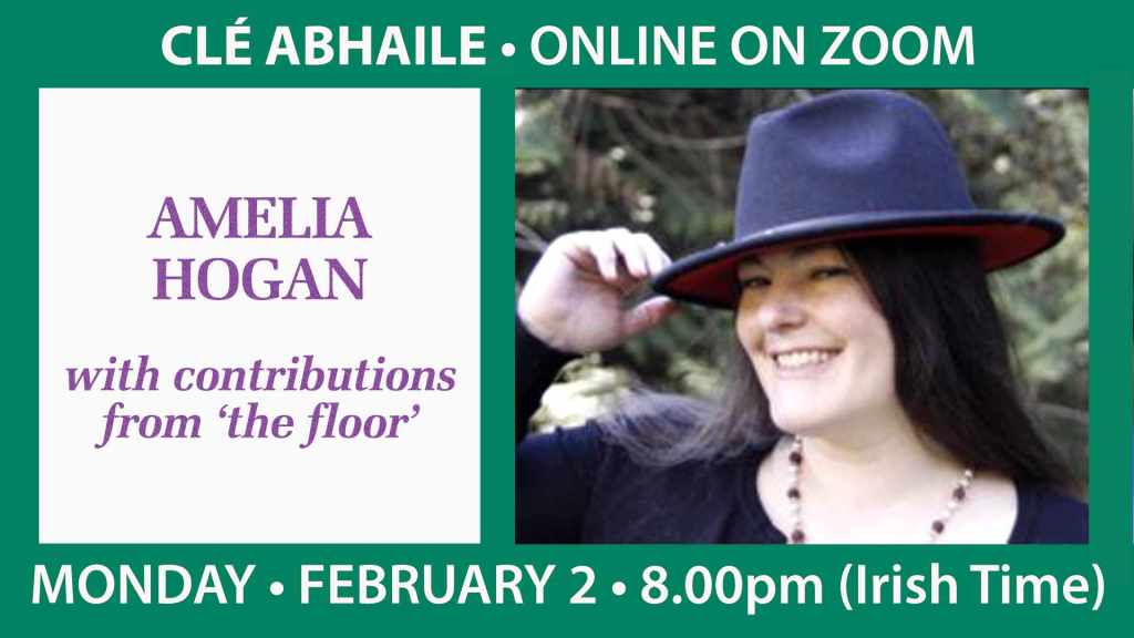 Amelia was previously a guest at the Clé Club live session. She has also been a regular visitor to the Inishowen Traditional Singing Weekend in recent years and intends to visit again in March.