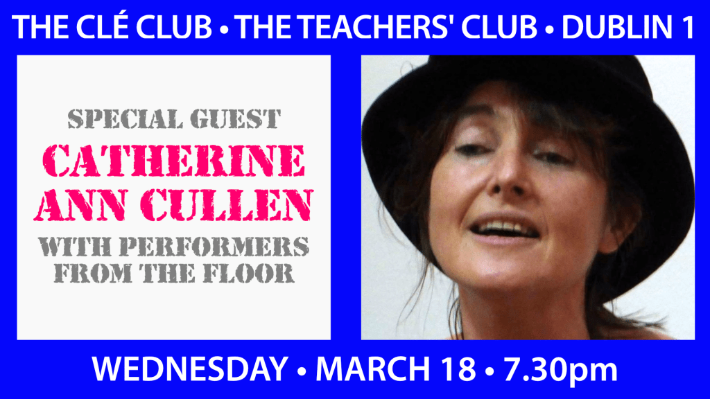 Born in Drogheda, Catherine Ann Cullen is a multiple award-winning poet, children’s writer, songwriter and singer. From September 2022 until February 2025 she was a Postdoctoral Fellow at University College Dublin, researching the lost street poets and tenement balladeers of 19th century Dublin. She was also the inaugural Poet in Residence at Poetry Ireland from October 2019 to December 2021.
