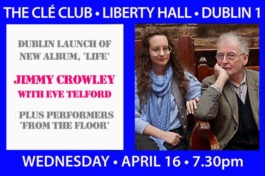 Cork’s own, Jimmy Crowley, will hold the Dublin launch of his latest album, Life, at the Clé Club session in Liberty Hall next week. In this new release Jimmy collaborates with a very talented group of instrumentalists. In a novel departure deom his previously recorded work, all of the songs on the album are composed by Jimmy, with one collaboration with John Spillane and one track with Eve Telford providing guest vocals. Des Geraghty will formally launch the album.