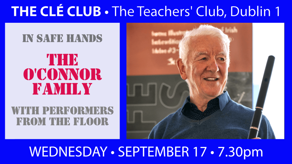 The Clé Club returns with a special celebration of the capital’s remarkable legacy of traditional music and song featuring members of the acclaimed O’Connor family, led by master flute player, Mick O’Connor, his daughter, Aoife, on concertina and son, Liam, the award-winning fiddle player who is now Director of the Irish Traditional Music Archive.
